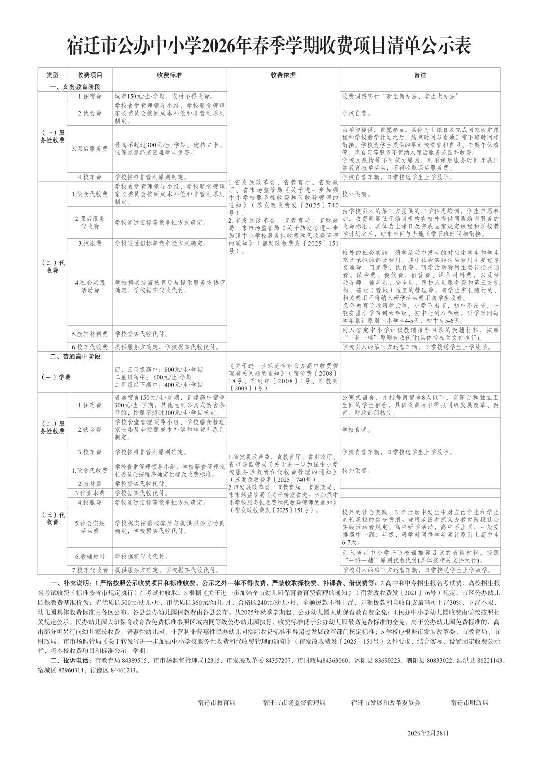 [洪城茶座] 泗洪公办中小学新学期收费项目清单公示 |