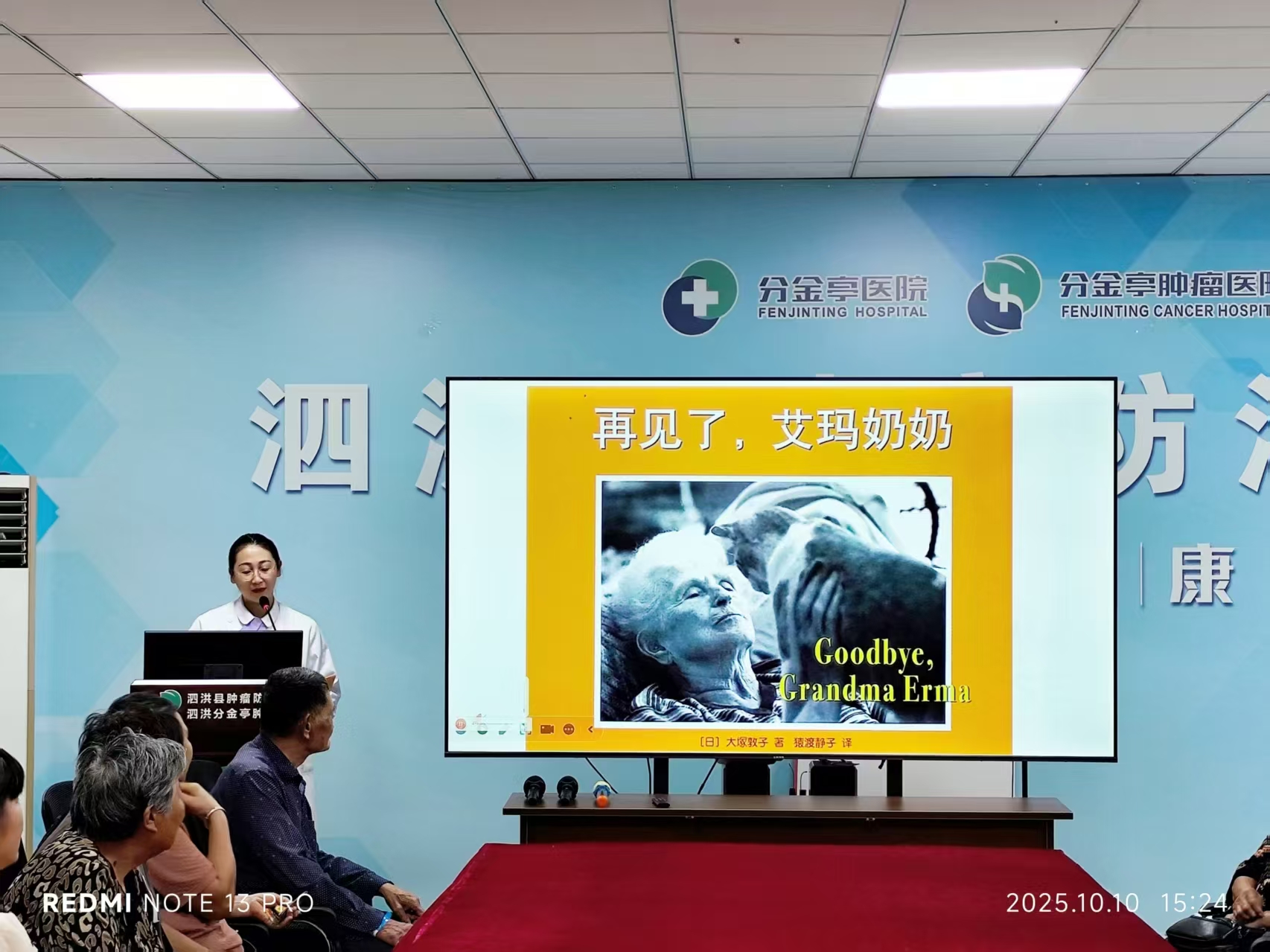 随后,活动移步至静谧的会议室,开启“生命教育沙龙”。安宁疗护病房王旎力护士长带领大家共读绘本《再见了,艾玛奶奶》——一个关于平静、尊严告别的真实故事。 在这里,每一种生命态度都被看见,每一份情绪都有了归宿。
