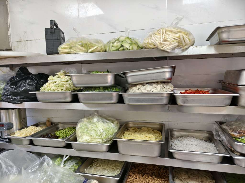 配菜已按要求秤量摆放到位,卫生打扫口头警告一次