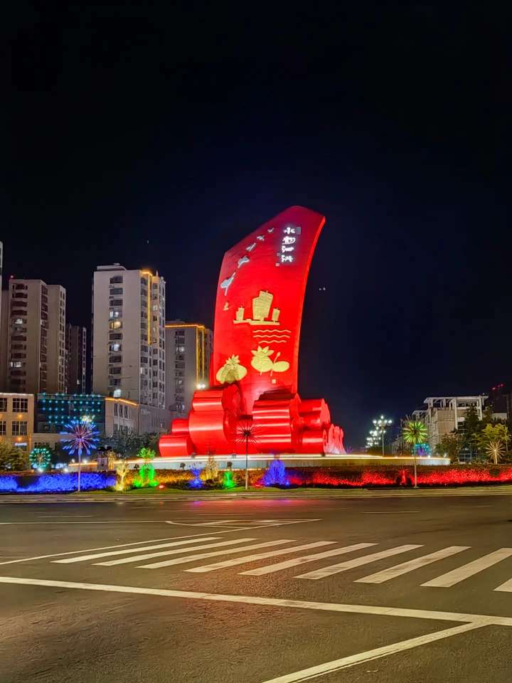 人山河路长华灯明,曦光未现少人行。