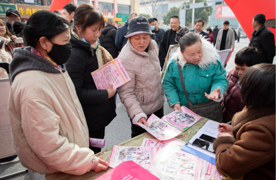 来自重岗街道的返乡人员王女士正仔细询问一家纺织企业的操作工岗位。“孩子马上上初中了,想陪在他身边。”她说,春节前在村里的就业服务微信群里看到了招聘预告,今天特意早早就赶了过来,“转了一圈,发现不少岗位都挺适合我,社保齐全,还能免费培训,真的很暖心。”