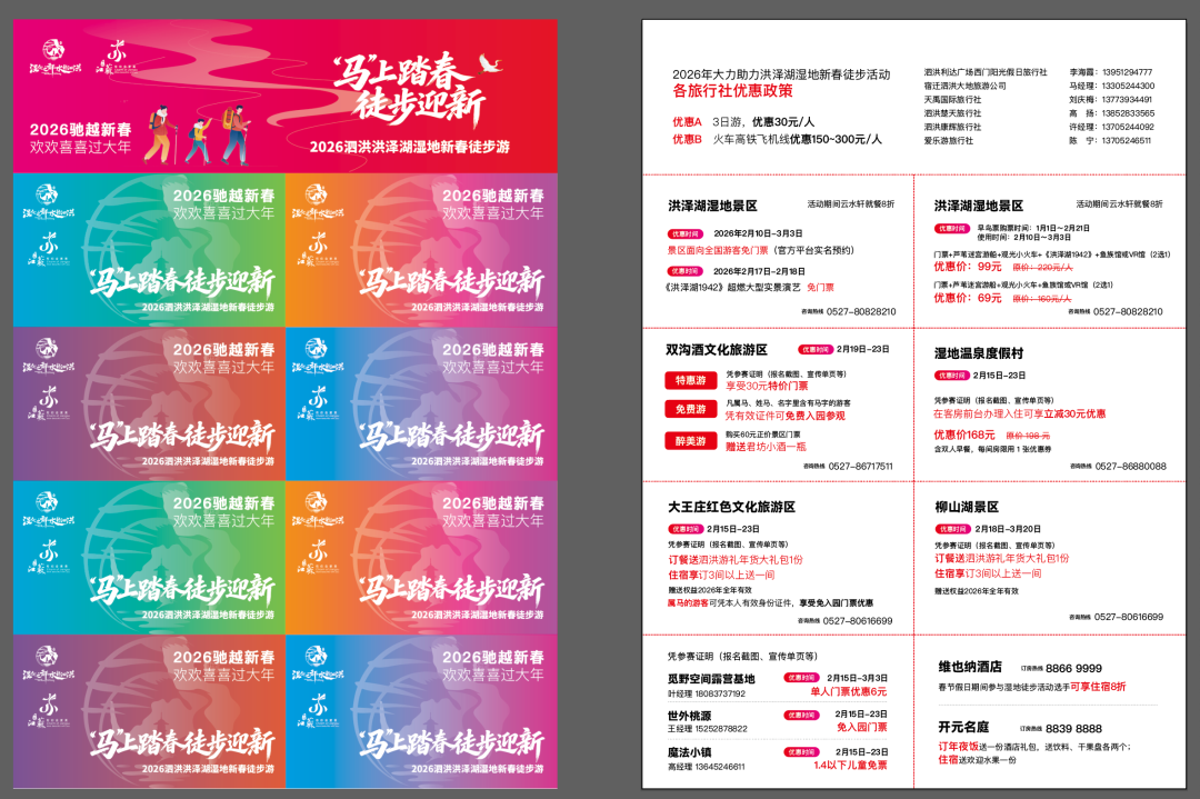 骏马奔腾,春意盎然。2026年春节,泗洪县围绕春节促消费工作主线,精心组织“驰越新春 欢欢喜喜过大年”2026泗洪春节文旅促消费系列活动,精准供给、精细服务、严守安全,假日文旅市场人气持续攀升、消费热潮涌动。据统计,2026年春节假期,全县共接待游客76.7万人次,旅游综合收入5.91亿元,按可比口径分别增长7.72%和6.9%,实现了2026文旅融合“开门红”。 春节期间,聚焦群众精神文化需求,全县累计举办各类文旅活动34场,实现城区、商圈、景区、乡村全覆盖。 县文化艺术中心举办泗洪籍名人书画作品展、文博NPC奇遇活动、博物馆画像石拓印、年画展等活动,吸引不少市民新春走进文博场馆感受不一样的年味。 文艺柳山乡村大讲堂、民俗展演、小戏展演给春节增添了浓郁文化氛围。 石集柳山象棋赛、瑶沟官塘“村晚”、临淮渔味年货市集、张塘时光春节灯光展等乡村文旅活动精彩不断。2026年春节,泗洪以高品质文旅供给聚集人气、带动流量,成功构建“文旅+消费”融合场景,有效激发市场内生动力。 为最大限度激活节日消费市场,2026年春节期间,泗洪县以“真金白银”的实惠点燃市民游客出游热情。 免费发放总价值近10万元“畅游泗洪”数字旅游年卡(家庭卡),精准激活家庭出游消费潜力。 5A级洪泽湖湿地景区敞开大门,免票迎客,引得游人如织;双沟酒文化旅游区、大王庄红色文化旅游区、觅野空间露营基地等重点景点推出特惠游、购票赠礼等优惠,成为游客争相打卡的热门选择。 依托文旅活动,春节期间免费发放价值75万元景区门票及5000张涵盖景区、宾馆、酒店、旅行社等市场主体的专项消费优惠券。 同步实施城市公交免费乘坐政策,让市民游客乐享实惠、畅行泗洪。一系列政策红利如春风化雨,极大点燃了群众出游热情,直接拉动文旅全产业链消费井喷。 假期期间,全县纳入监测的9家特色餐饮店平均上座率飙升至137.89%,青阳街道三大餐饮聚集区也持续爆满,平均上座率达111.88%;重点宾馆客房一房难求,假期平均入住率突破82.12%,文旅消费带动效应充分彰显。